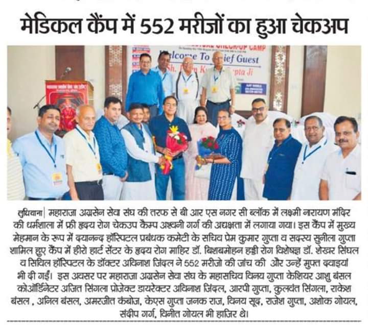 Shri Ashwini Garg has been elected as President of Maharaja Aggarsain Sewa Sangh (Punjab Kesari, 11.12.2022)
